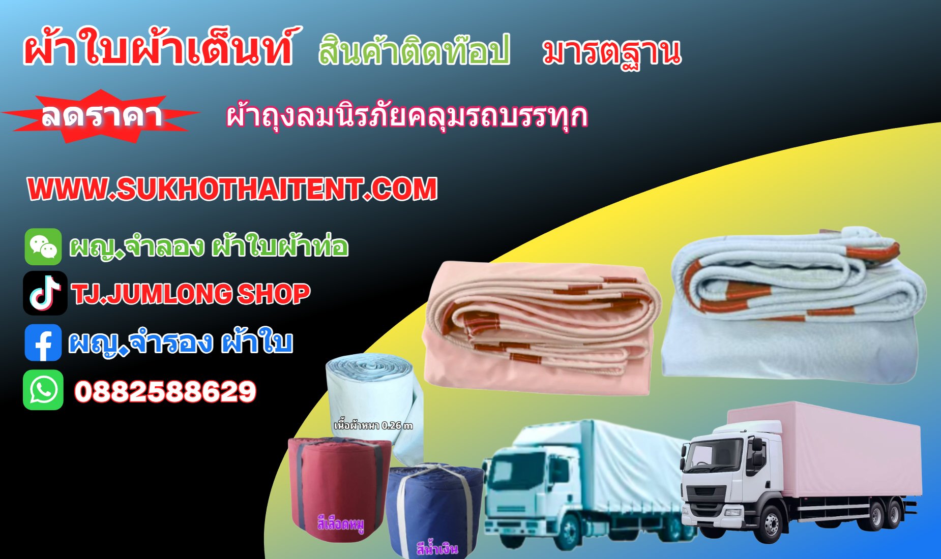 1.ผ้าใบผ้าเต็นท์คลุรถบรรทุก 6 ล้อ 10 ล้อ รถพ่วง