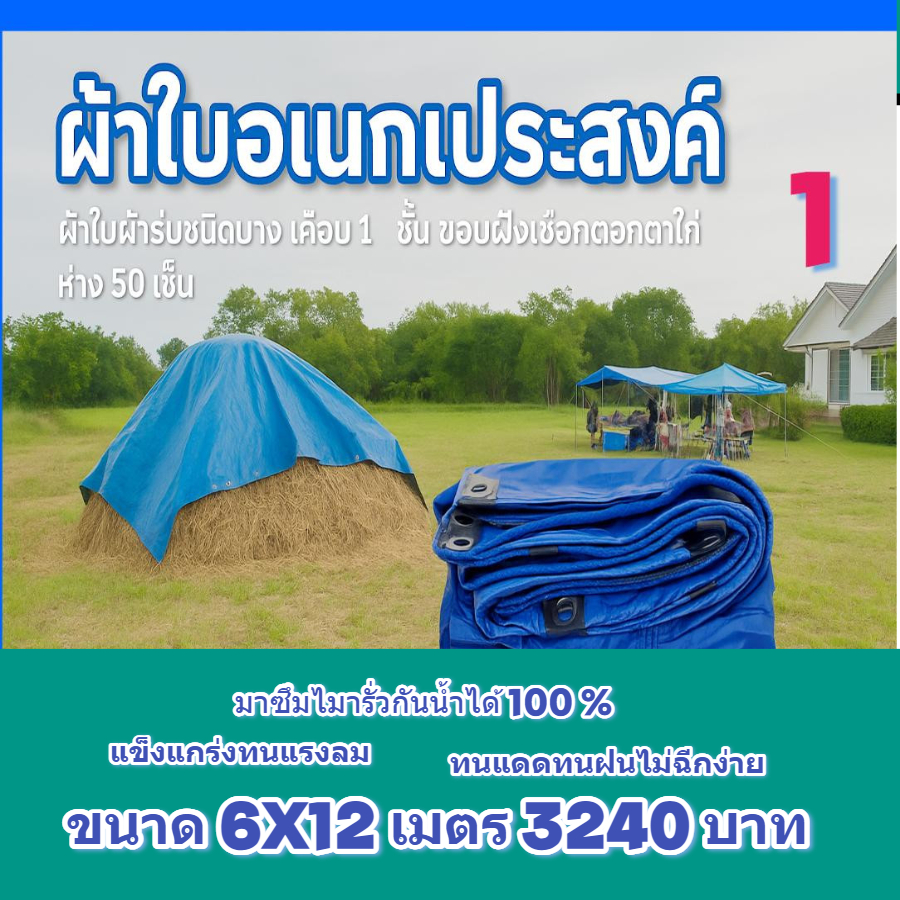 ขนาดใช้คลุมอาคารร้านค้าคลุมกองข้าวคลุมสิ่งของนอกอาคารผูกเชือกให้แน่นให้ตึงน้ำจะไหลผ่านสะดวก